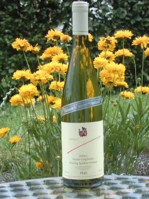 • Aus anfänglicher Skepsis gegen diesen mit 60 Gramm natürlicher Restsüße (also keine unsägliche schwefelgesättigte Süßreserve) und einer Goldenen Kammerpreismünze ausgezeichneten Rieslaner wurde nach der ersten getrunkenen Flasche pure Begeisterung: Mineralischer Biss, säuerlich würziger Apfel und Holunderblüten - Ring frei für ein filigran-finessenreiches Frucht-Säurespiel der Extraklasse, das bei gerade mal 9,5% Alkohol auch mal einen ganzen Abend lang Genuss pur verspricht.